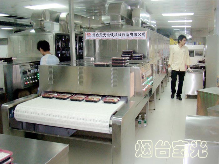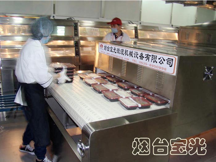煙臺寶光微波機械設(shè)備有限公司,根據(jù)客戶的盒飯產(chǎn)量和場地等要求選型,功率在10—200千瓦。適用企業(yè),學校、快餐公司、餐飲店、賽場、展會等的盒飯配送,其優(yōu)點是產(chǎn)量高、連續(xù)快速,2分鐘左右即可達到溫度要求。不破壞飯菜的營養(yǎng)成分、不變色、不改變風味。同時,由于加熱過程中,微波的熱效應(yīng)和非熱效應(yīng)共同的作用,對飯菜起到了殺菌作用,滿足了食品的衛(wèi)生指標要求。